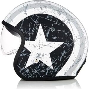 El modelo top ventas Sprint totalmente renovado 22.06. El casco capitan america. Es un casco jet muy versátil, ya que incluye una gafa de sol integrada. De este modo podemos circular sin miedo al viento o al sol. Los cascos Origine Spirit incluyen diseños muy originales, de estilo retro/vintage.Las calotas de los modelos jet Spirit son estilizadas, además de muy ligeras. Todos los cascos Origine son homologados ECE