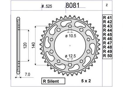 Recambio de transmision OGNIBENE, reemplazo directo del original. Un cambio en el numero de dientes del pinon o corona modifica la relacion de transmision: mas dientes en la corona aumenta la aceleracion, menos dientes favorece la velocidad punta.