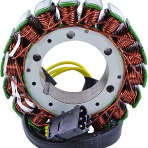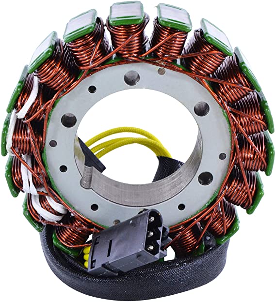 Desconecta el conector del estator y mide la resistencia entre cada par de cables con un multimetro en ohmios. Las lecturas deben ser similares entre todas las combinaciones (tipicamente 0.1-1 ohm). Si alguna lectura es infinita (circuito abierto) o muy baja (cortocircuito), el estator esta defectuoso.