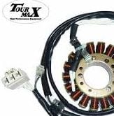 Desconecta el conector del estator y mide la resistencia entre cada par de cables con un multimetro en ohmios. Las lecturas deben ser similares entre todas las combinaciones (tipicamente 0.1-1 ohm). Si alguna lectura es infinita (circuito abierto) o muy baja (cortocircuito), el estator esta defectuoso.