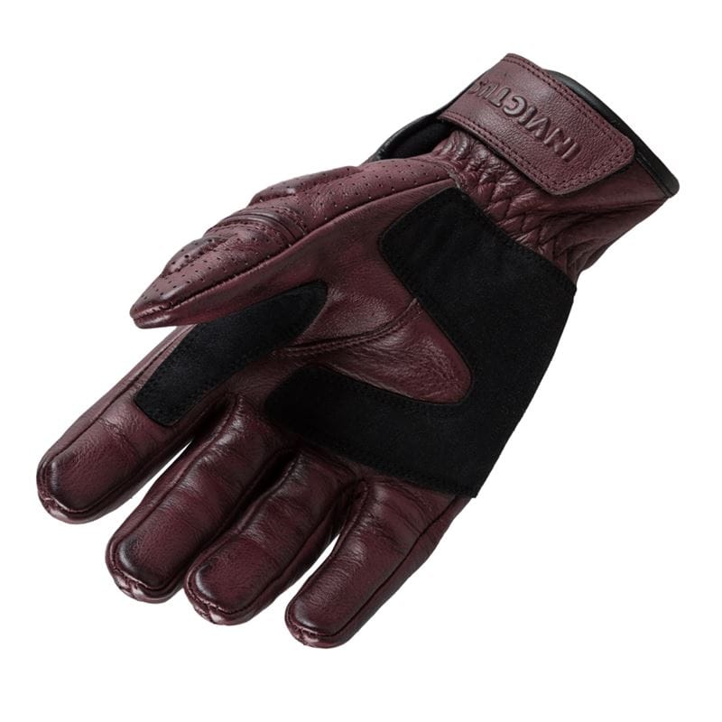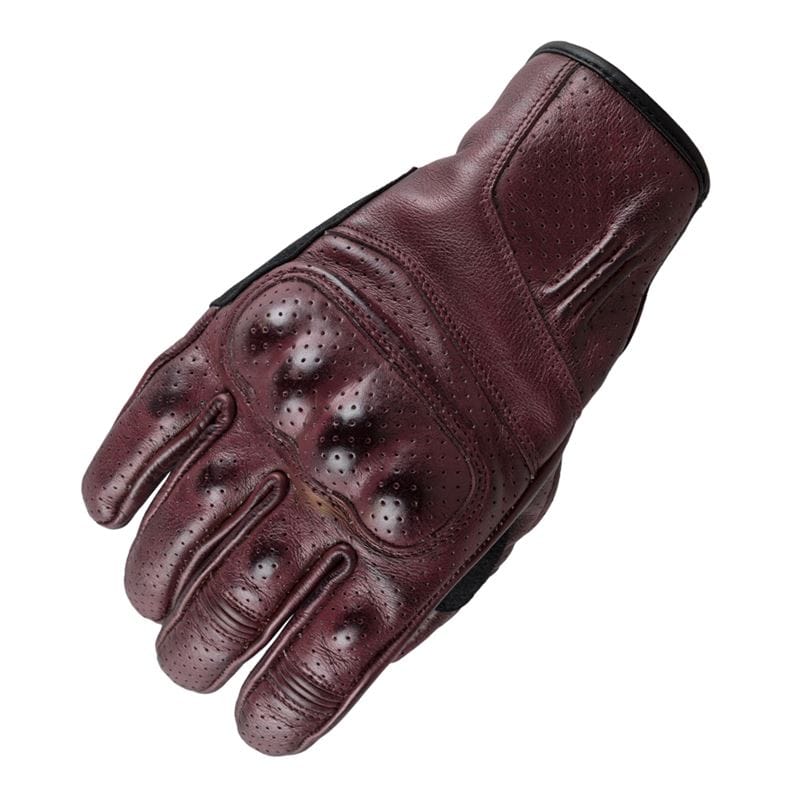 Guante de cuero granate / rojo oscuro con protección en nudillos estilo vintage
