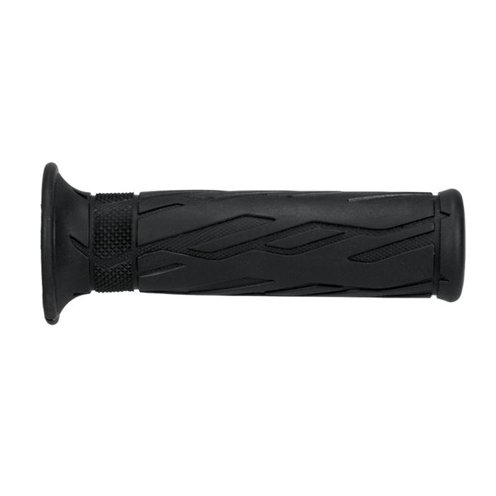 Puños de goma Ariete 02623/SSF con diseño réplica de los puños Suzuki para moto de carretera. Fabricados en material antialérgico, son unos puños cómodos y ofrecen un buen control de la moto. Tienen una longitud de 120 mm y están perforados para permitir la colocación de los topes de manillar. Esta versión está fabricada en goma Super Soft.