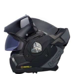 Casco convertible y muy versátil con mentonera abatible a 180º perfecto para cualquier tipo de conducción y para todas las condiciones meteorológicas. Calota fabricada con nuestro material KPA para mayor ligereza y seguridad. Amplia visera antirrayas preparada para el sistema antivaho, Pinlock Max Vision, y visor solar interior. Peso 1650 en la calota pequeña. Homologado P+J (puede circular abierto o cerrado)