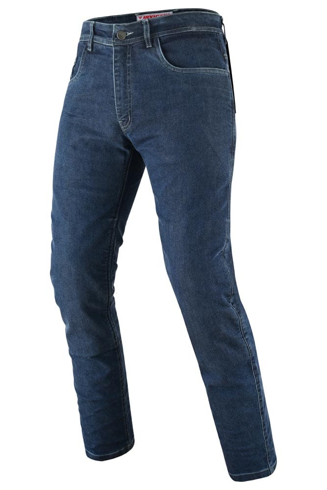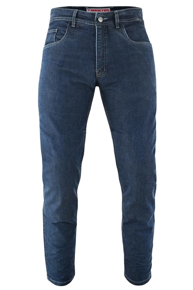 Vaquero monocapa de alta resistencia: El pantalón de moto Invictus Trinity está fabricado con tejido denim entretejido con Nylon y Polyester, proporcionando una alta protección con una sola capa.